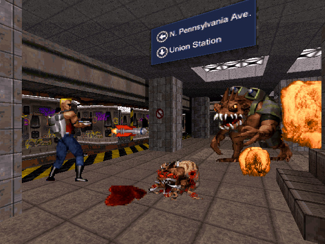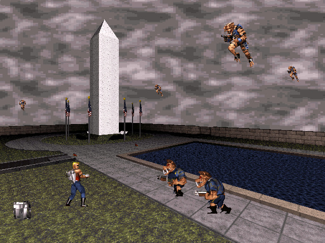 Aliens have captured the President! Duke gets word that alien scum have landed in Washington D.C., laid it to waste, and imprisoned the leader of the free world. Always up for a heroic deed, Duke heads to D.C. to rid the city of enemy dirtbags and return the president to power!