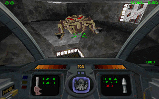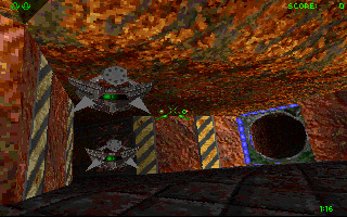 You begin deep below the surface of Lunar Base I where an unknown alien race has taken over the chasm of the Post-Terran Mining Corporation. Lunge straight down mine shafts, twist around never-ending tunnels and fight your way past robotic menaces in an environment that's truly 360 degree 3-D...move up, move down, shoot everything everywhere. Hang onto your senses (and your lunch) as you drop straight down mine shafts on a ride that'll leave you spinning.